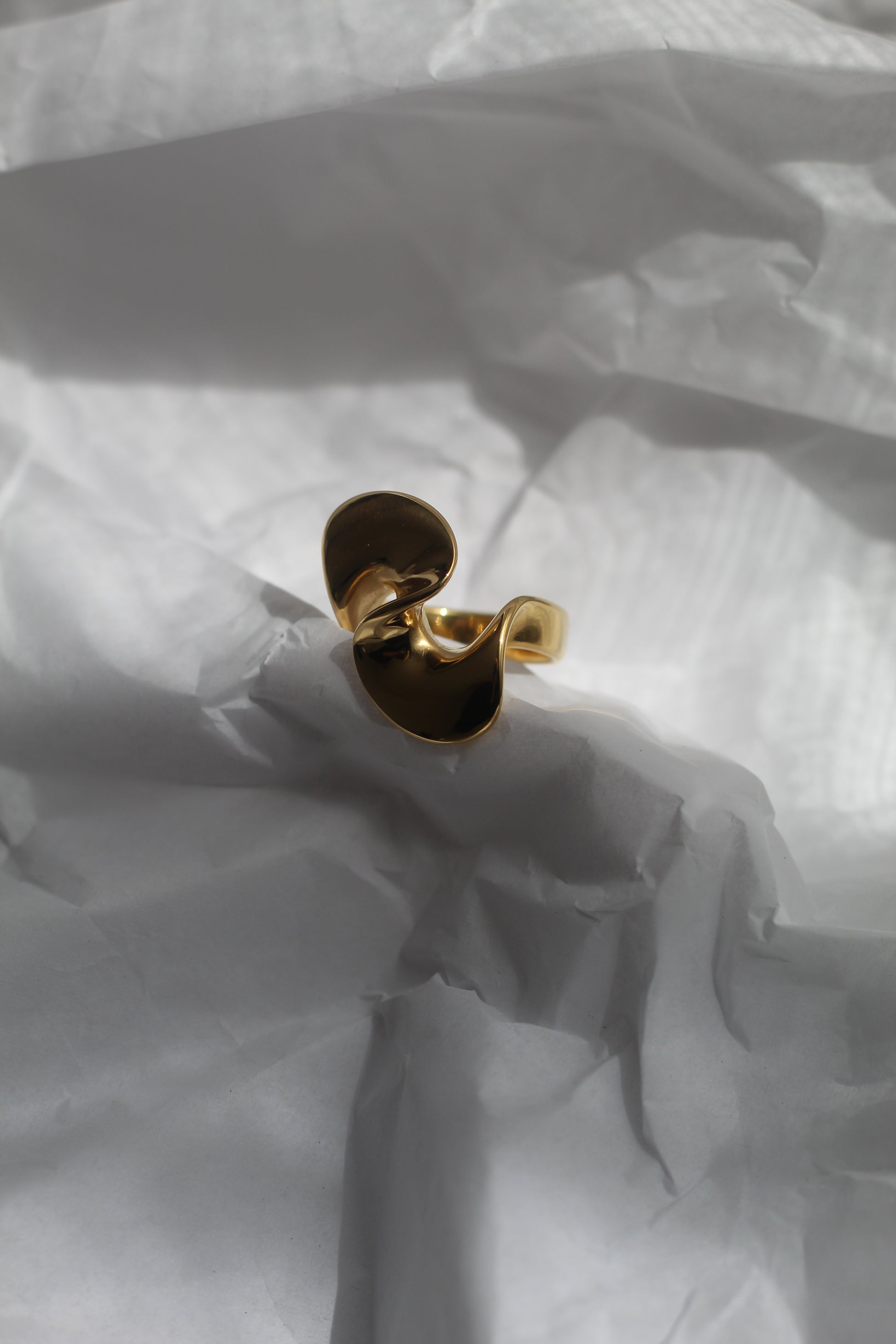 Véritable œuvre d’art miniature, la bague Olivia captive par ses formes organiques évoquant une spirale en pleine rotation. Son design ouvert et asymétrique donne l’impression d’un ruban doré figé dans un élan fluide et élégant.
