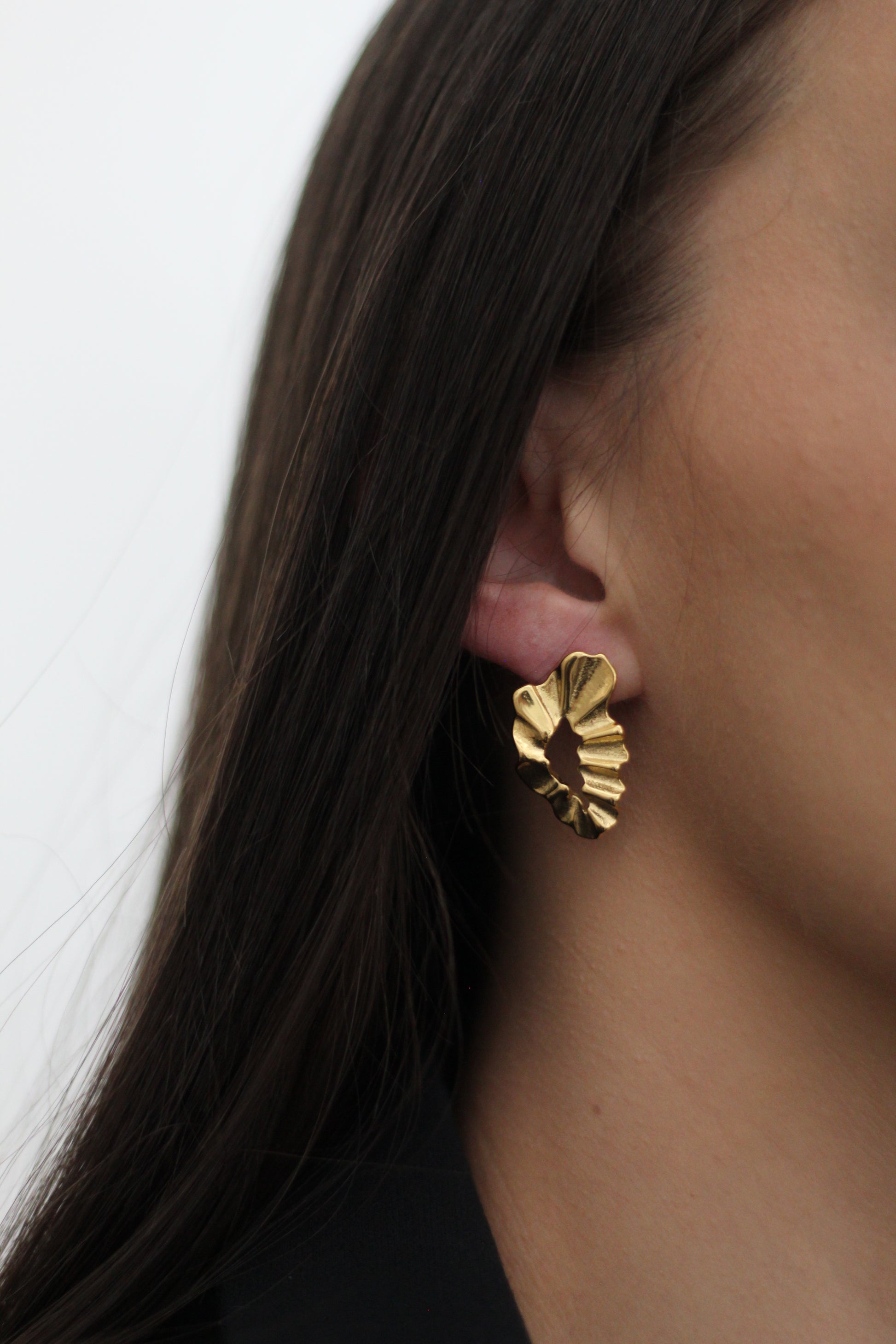 Avec leur design plissé et organique, les boucles Aura captent la lumière comme ta présence : sans effort. Leur forme sculpturale, à la fois brute et élégante, évoque une fleur abstraite ou une onde figée dans le temps.